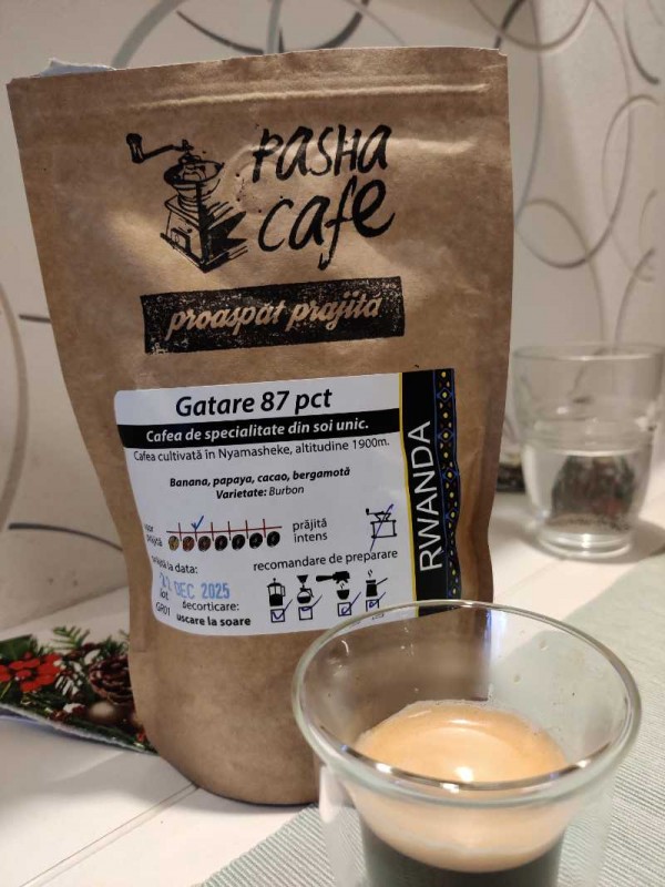 Dulce, intensitate medie, note fructat florale distincte de portocală și mere. Aciditatea ponderată o recomandă pentru servire espresso sau machiato. O cafea foarte bună cu proveniență dintr-un sat unde cafeaua din varietăți locale se cultivă tradițional, și este posibil ca să furnizeze diferențe notabile de la o recoltă la alta și evident funcție de nivelul de prăjire. Cea de la Pasha merită!